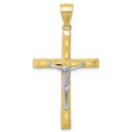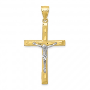 10k & Rhodium Diamond-Cut Crucifix Pendant
