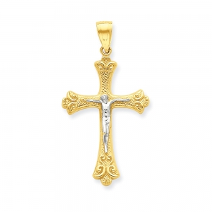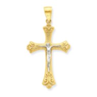 10k & Rhodium Fleur de Lis Crucifix Pendant
