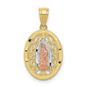 10K Tri-Color Gold Our Lady Of Guadalupe Milgrain Oval Cut-out Religious Medal