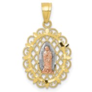 10K Tri-Color Gold Our Lady Of Guadalupe Scalloped Oval Cut-out Religious Medal