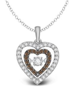The center diamond is set into a small bezel that hugs the edge of the diamond. The bezeled diamond is then securely placed into the middle of the pendant using a new and innovated design allowing the diamond to continuously move with the slightest of movements such as breathing, heartbeat, or even the vibrations from the room you are standing in creating The Dancing Diamonds.