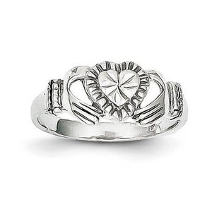 This ring is a 10k White Gold Polished Claddagh Ring and weighs 1.6 grams.