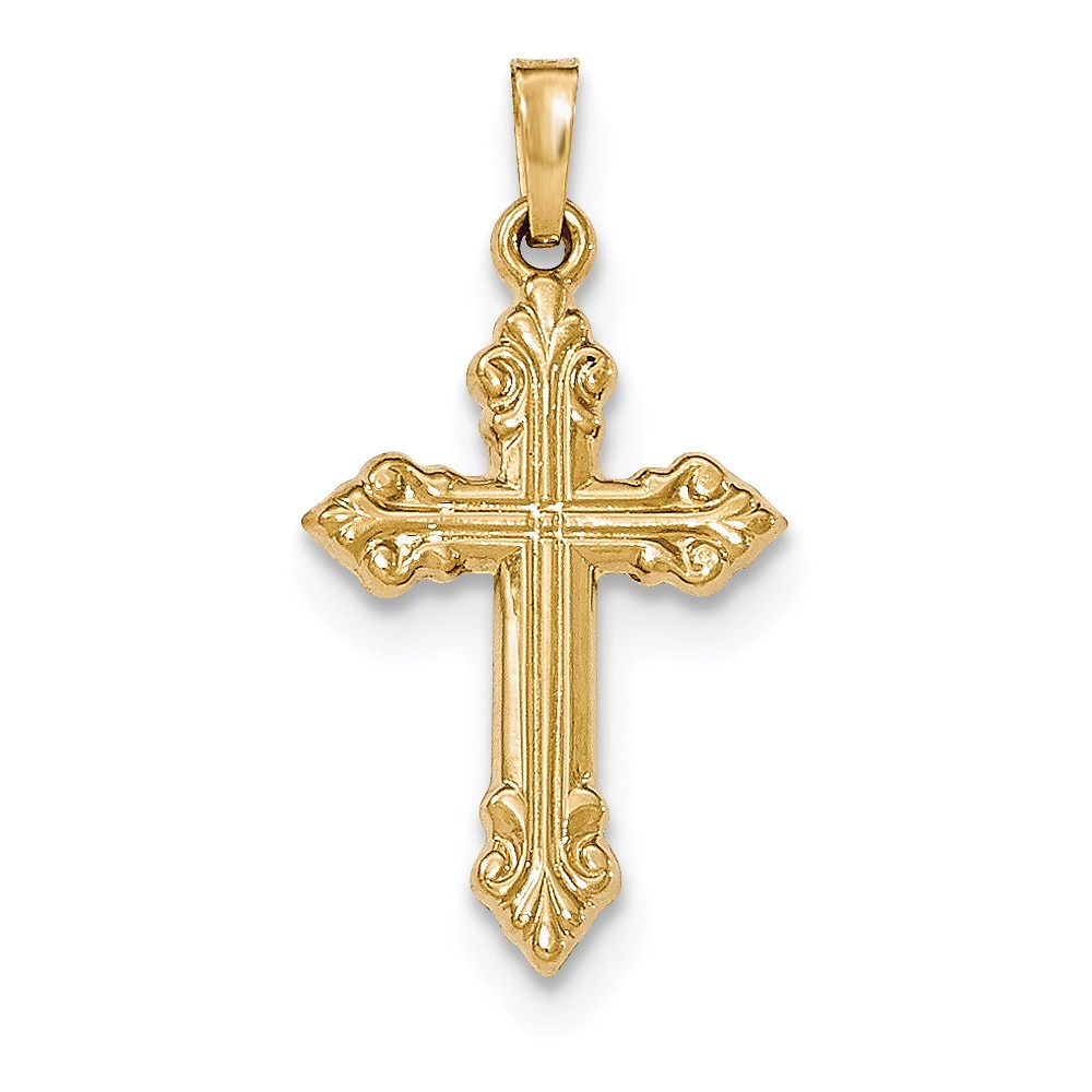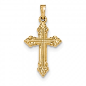 14k Brushed and Polished Budded Cross Pendant