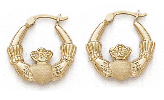 14K YELLOW CLADDAGH HOOP (3/4 INCH)