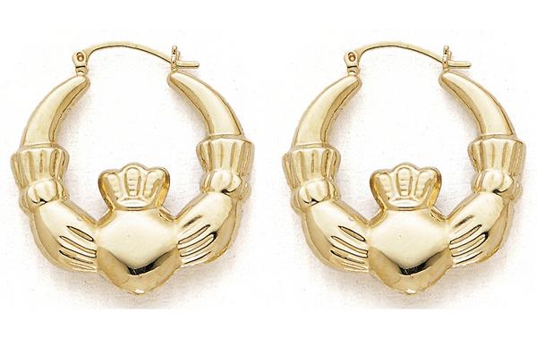 14K YELLOW CLADDAGH HOOP (OVER 1 1/4 INCH)