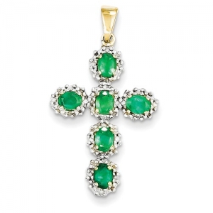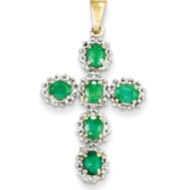 14k Diamond & Emerald Cross Pendant