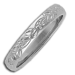 14k White Gold 3mm Hand Engraved Fancy Wedding Band