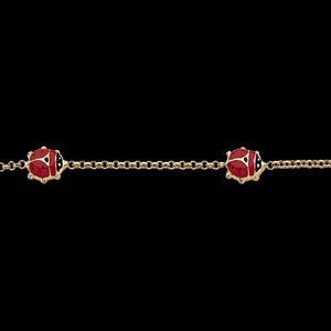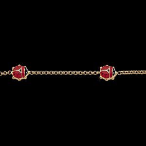 14K Yellow Gold 6"Red Enamel LadyBug Bracelet