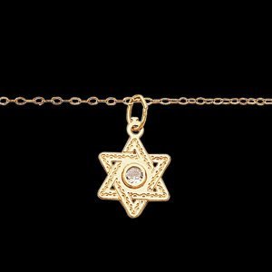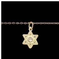 14K Yellow Gold Child Star Of David W/CZ And 15"Chain