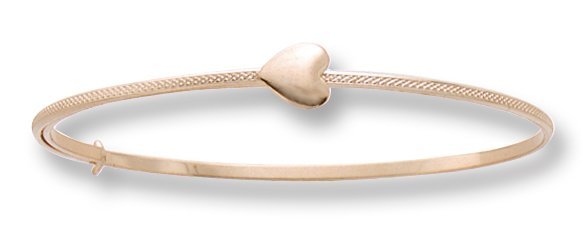 14K Yellow Gold Children's Adjustable Heart Bangle Bracelet