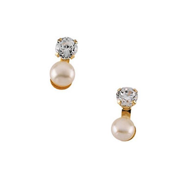 14K Yellow Gold Children's Button Earring W/Pearl And CZ