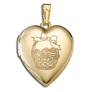 14K Yellow Gold Children's "Easter Basket" Heart Locket