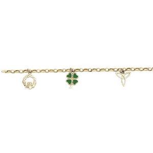 14k Yellow Gold Claddagh Charm Bracelet W/ 3 Charms (enamel)