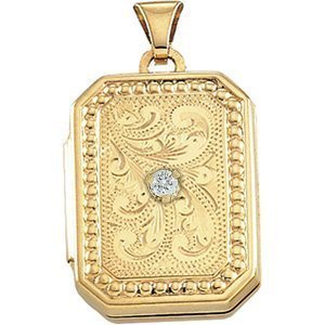 14K Yellow Gold Cremation & Hair Locket w/ Diamond Center