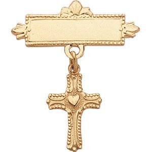 14K Yellow Gold Crucifix Baptismal Pin