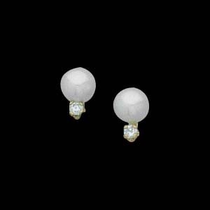 14K Yellow Gold Teen Cultured Pearl And Diamod Earring