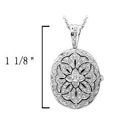 14K White Gold Premium Oval Photo Locket with Diamonds