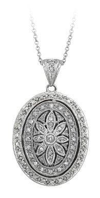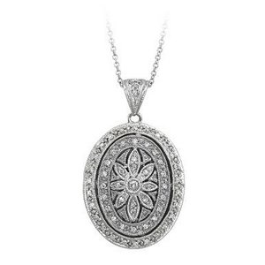 14K White Gold Premium Oval Photo Locket with Diamonds