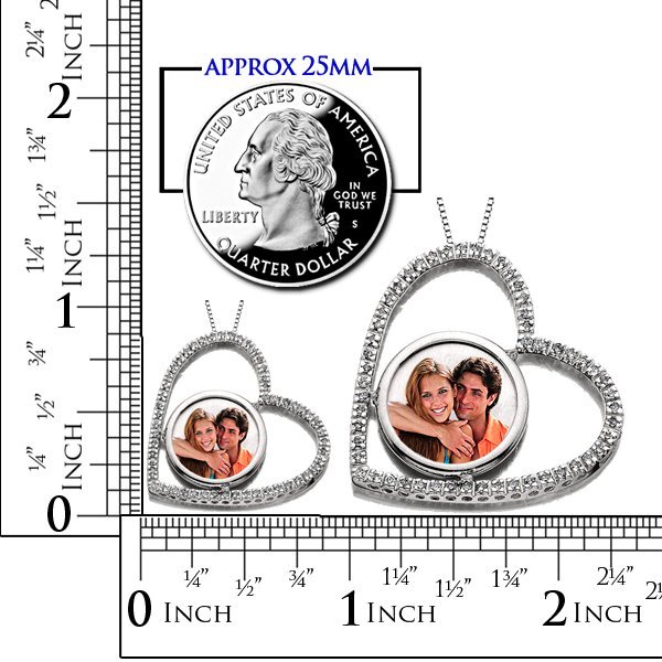14k White Gold Diamond Heart Photo Pendant Picture Charm