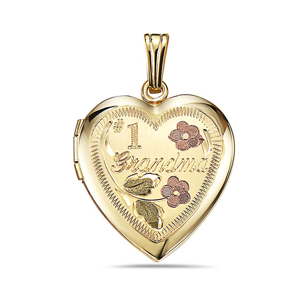 What is on the front of the locket? with Floral Design