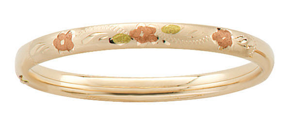 14k Tri-Colored Gold Filled 5 1/4 In Children's Floral Bangle Bracelet