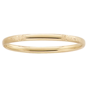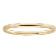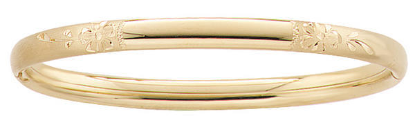 *14K Gold Filled Children's Bracelet *Fits Children ages 3-10 years old. *This item is solid 14K Gold Filled and comes with a manufacturers Lifetime Guarantee. *Ships in 1-2 Business Days *Superior Quality *Hand Engraved Satin Finish *Bracelet has a secure and strong guard and hinge lock. *Bracelet has beautiful "Floral" pattern. Bracelet can be engraved with a name, initial, or short message. Perfect for Birthdays, Religious Events, or any occasion.