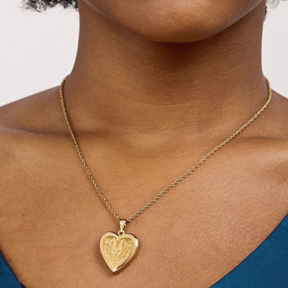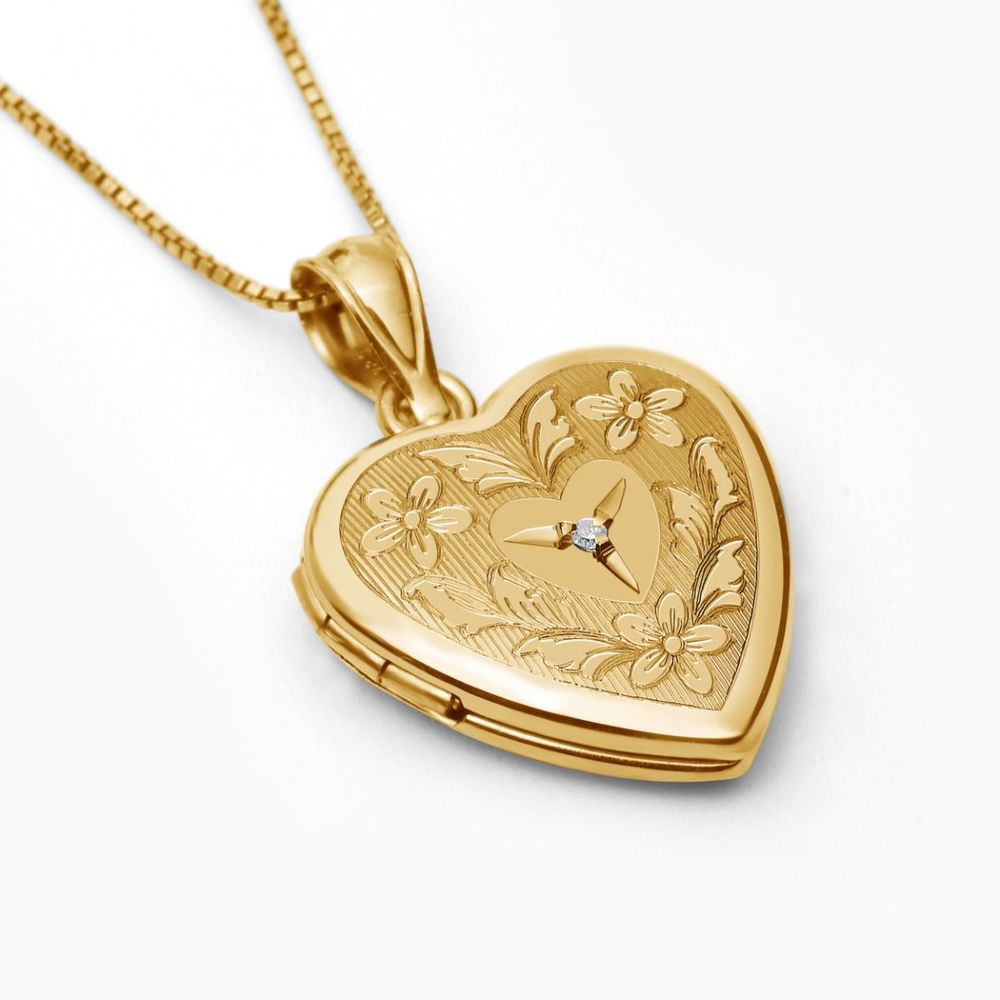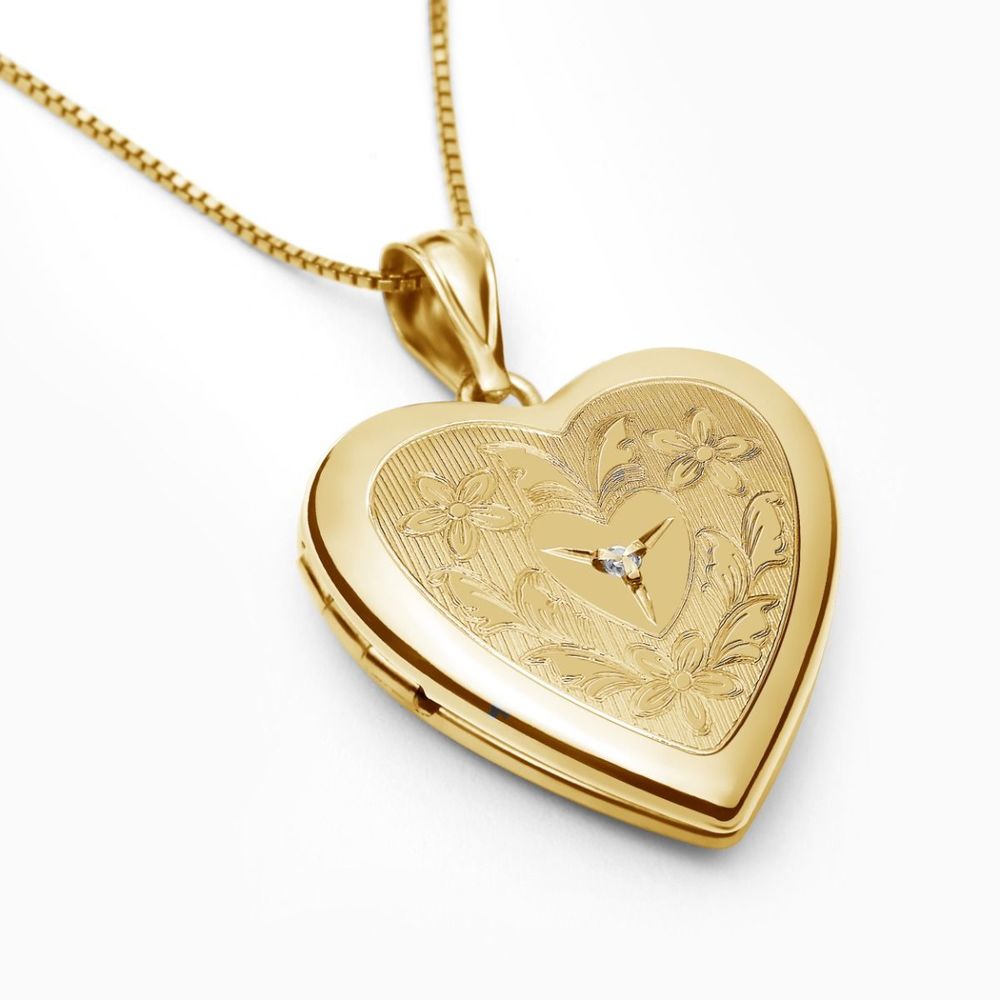 14K Gold Filled Floral Heart Photo Locket with Diamond