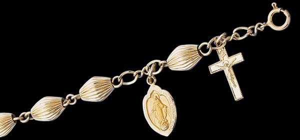 14K Yellow Gold Oval Fluted Rosary Bracelet