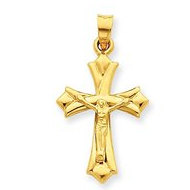 14k Gold Hollow Reversible Crucifix Pendant