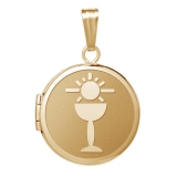 This photo locket is perfect for a Communion gift. Solid 14K Yellow Gold Round Yellow Picture Locket can be engraved with a special message. CHAIN SOLD SEPARATELY.