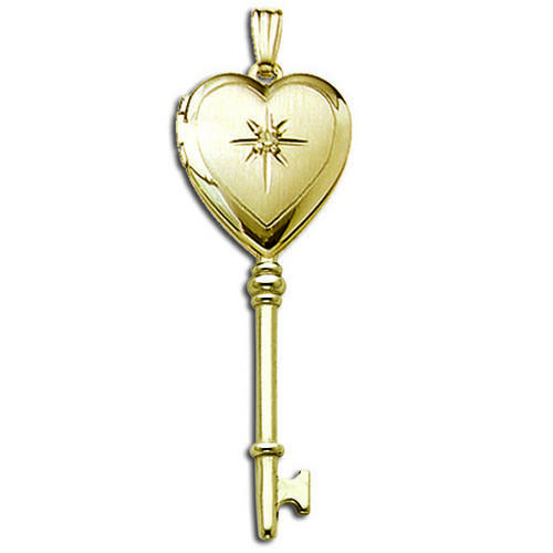 Solid 14K Yellow Gold Small Heart KEY Locket
