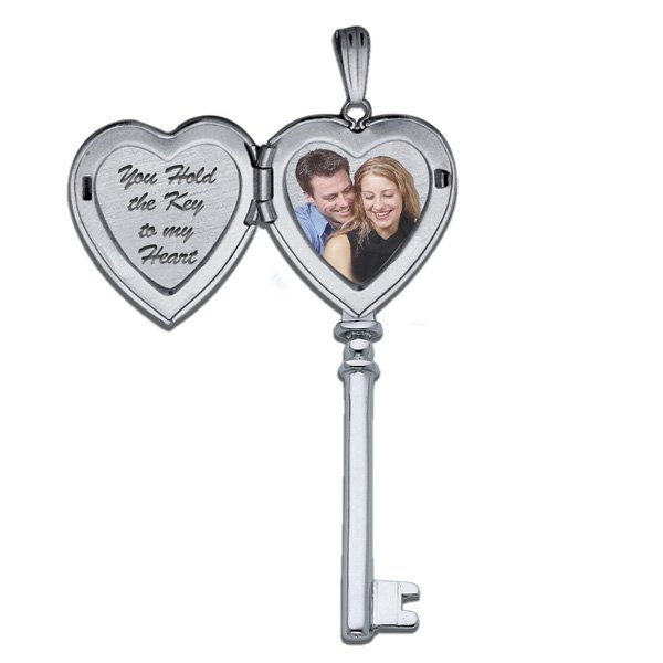 14k White Gold Key to my Heart Photo Locket