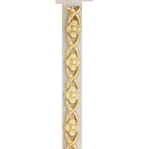 THis beautiful bracelet has a unique flower design with a high polish finish. The box lock and figure eight clasp add extra durability.