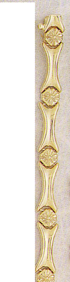 This beautiful 14K Solid Gold bracelet has a flower desigh with a high polished yellow gold bar combination. The box lock with added figure eight saftey catch makes this bracelet durable enough for everyday use.