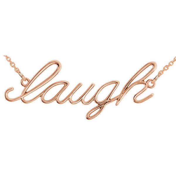 This "Laugh" necklace is available in 14K Yellow Gold, 14K White Gold or 14K Rose Gold. The Pendant weighs approximately 2.0 grams. This item is