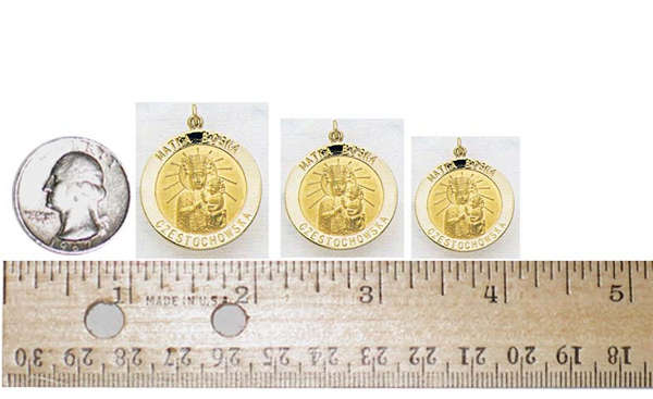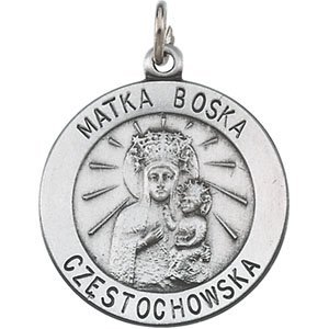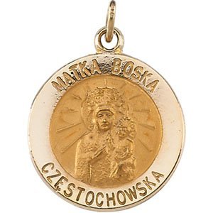 This Solid 14K Gold Matka Boska Medal is the "mother of God" of Chestochowaska " Black Madonna" due to the present darkened appearance of the icon. She is the national heroine of the Polish people.