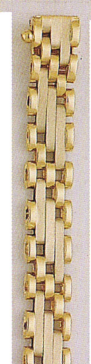 This handsome bracelet has both white and yellow gold links. The box lock has an added figure eight saftey clasp. The high polished finished gives this bracelet just the right amount of contrast.