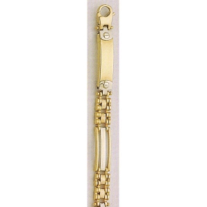 This handsome bracelet has both style and durability. The high polished links are both white and yellow gold. This bracelet also has a yellow gold lobster claw clasp.