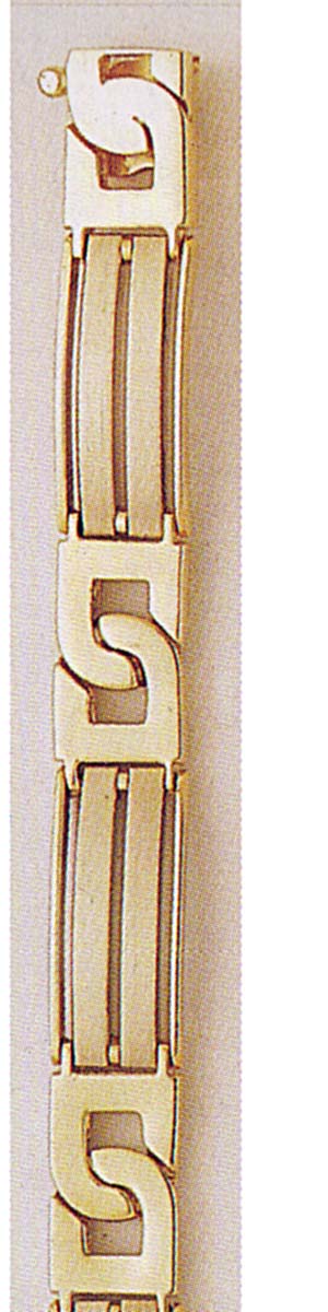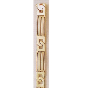 This handsome bracelet is both stylish and durable with its two tone link design. The yellow gold links have a rich high polish finish while the white gold bars have a satin finish that adds just the right amount of contrast. The box lock is very strong with a added figure eight clasp.