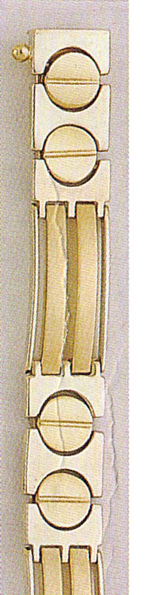 This bracelet is both stylish and durable with two tone links and a box lock with a figure eight clasp.