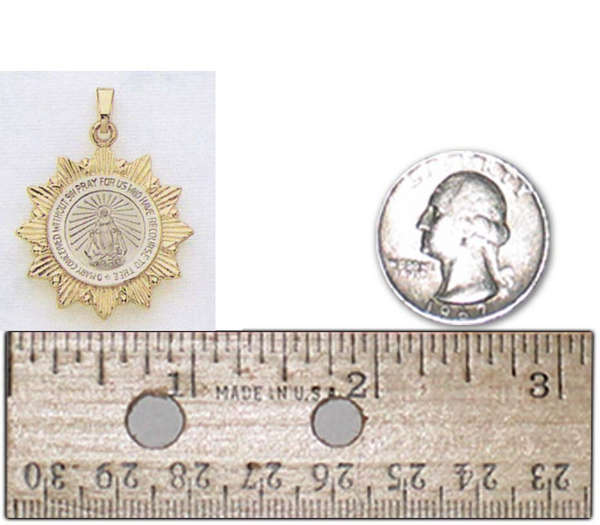 "I've purchased two Miraculous Medals from you at different times. Both times I've been highly satisfied. They came when expected and there were no hidden costs. Actually look so much better than pictures on site. No photo does jewelry any justice. The recent one I got was in sterling silver. I bought it for a friend for Mothers Day as she keeps admiring the one I always wear. Won't she be surprised. Thank you for your meticulous work in creating this fine jewelry."