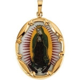 14K Gold and Porcelain Our Lady of Guadalupe Religious Medal