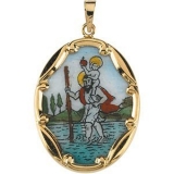 14K Gold and Porcelain Saint Christopher Religious Medal