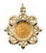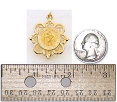 This beautiful scalloped design boarder is perfect for a lacey look. The 14k yellow gold has a high polish finish and is surrounding a round Saint Christopher medal. Saint Christopher is the most worn medal by travelers.