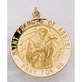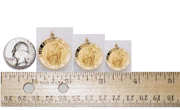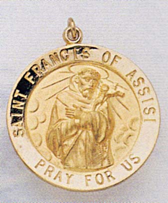 This 14K Solid Gold medal is of Saint Francis of Assisi Embracing the cross of Jesus.
