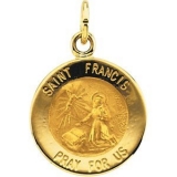 This Solid 14K Gold medal is of Saint Francis receiving the stigmata.