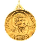 This 14K Solid Gold medal represents Actors Saint Genesius day is August 25th.