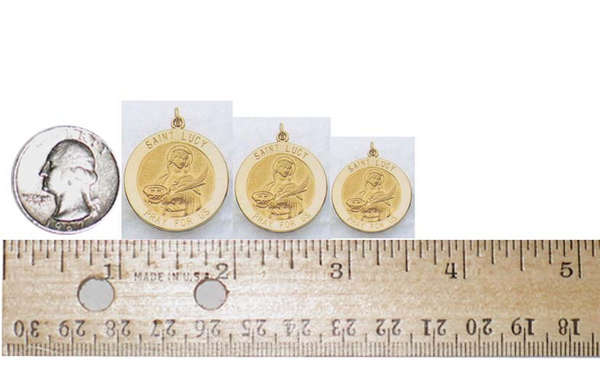 This Solid 14K Gold Saint Lucy medal is worn by people with eye trouble.