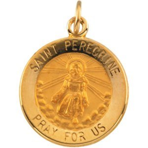 Saint Peregrine is the saint that helps Cancer Patients. Saint Peregrine Day is May 2nd. This medal is all 14K Solid Yellow Gold.
