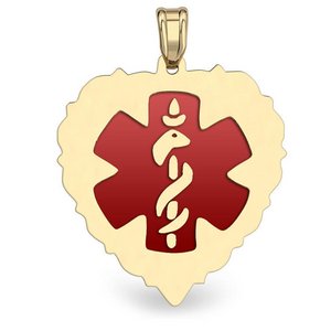 14k Yellow Gold Medical ID Heart Charm or Pendant with Red Enamel